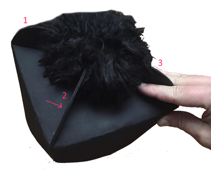 Bovenop de baret staan drie 'hoorns'. Wanneer je de baret aanreikt zorg je ervoor dat de priester gemakkelijk de middelste 'hoorn' kan nemen met zijn rechterhand.