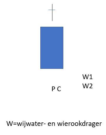 W hangt het wierookvat aan de staander en neemt het wijwatervat alvast. Wanneer, wat later, P de woorden 'Pater noster' zong, geeft C de wijwaterkwispel aan P.