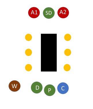 Bij het rondgaan gaat D RECHTS van P en C LINKS van P.