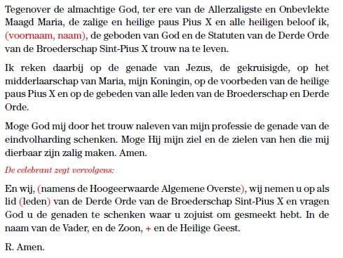 Vervolgens gaat P de tabernakeldeur openen voor de gelofte van de tertiarissen, die geknield blijven zitten op de communiebank. Eén voor één leggen de tertiarissen nu hun gelofte af d.m.v. onderstaande tekst.