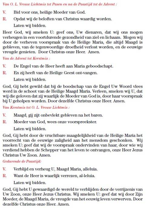 De priester gaat met C aan de altaarvoet knielen voor de litanie van de Allerheiligste Maagd Maria. De acolieten knielen mee. De derde ordelingen en hun peters/meters knielen ook (op de communiebank). W / 2de ceremoniaris gaat weg naar de zijkant met het wijwater en schaaltje.