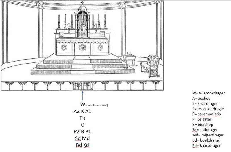 Hierna maken allen op teken van C een (knie)buiging en keren naar de sacristie terug.