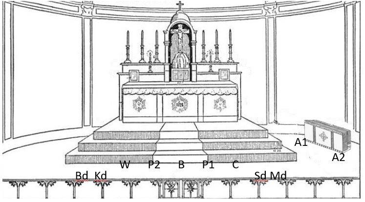 Het kan zijn dat B de gebeden boven aan het altaar doet ipv aan de altaarvoet.