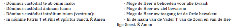 De Overste omgordt de novice met de rozenkrans. Zodra dit gebeurde gaat P verder met :