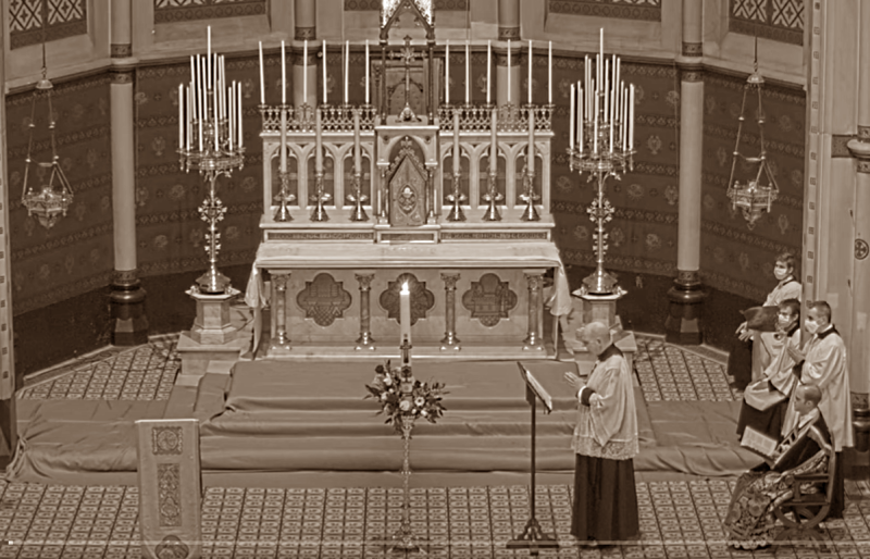 Geen gebeden aan de altaarvoet. Bij binnenkomst maakt men kniebuiging aan de altaarvoet zoals gebruikelijk en P gaat direct de trappen op voor de wierookoplegging.